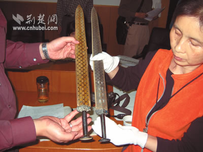 根據(jù)國家文物保護法實施條例,復(fù)制文物,須經(jīng)省級政府文物行政主管部門審核,報國務(wù)院文物行政主管部門批準(zhǔn)。荊州郢都青銅藝術(shù)研究所宣稱的“高仿真”越王勾踐劍,算不算復(fù)制?省博物館和該所各執(zhí)一詞。