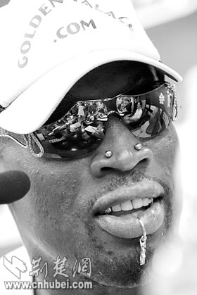 荊楚網(wǎng)消息(楚天都市報)(記者門天清 實習(xí)生周玥廷 金天)昨日中午,有著8年NBA職業(yè)球員生涯,并擁有6枚NBA總冠軍戒指的前NBA巨星羅德曼一行從上海飛抵武漢,他將參加于今晚在漢舉行的“2005美國前NBA巨星王朝中國巡演”第一站的比賽。