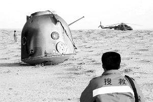 如今,“神舟”6號發(fā)射在即。與“神舟”5號相比,“神舟”6號的各種技術(shù)狀態(tài)又有質(zhì)的飛躍。為了滿足載人航天后續(xù)發(fā)展需要,我國已開始選拔培養(yǎng)首批女航天員。廣大航天工作者正在各自的崗位上,默默地奉獻(xiàn)著全部的心血和汗水。今后,他們還將用一個又一個飛天壯舉來證明中國人實(shí)現(xiàn)中華民族偉大復(fù)興的志氣、信心和能力! 2002年4月1日,“神舟”三號飛船在預(yù)定地域著陸。新華社發(fā)來源:《解放軍報》