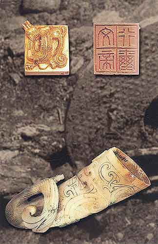 龍鈕“文帝行璽”金;(上,邊長(zhǎng)3.1厘米)