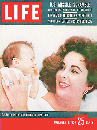 1957年,伊麗莎白·泰勒抱著和第三任丈夫、制片家邁克·托德所生的女兒麗莎·托德。這一年,她才25歲,已經(jīng)結(jié)過兩次婚。泰勒在結(jié)束第二段婚姻的兩天后就決定嫁給托德,可在1958年,托德死于飛機失事。