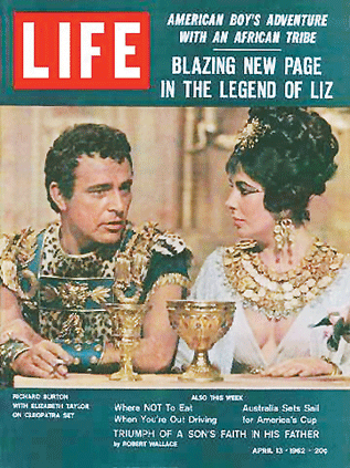 1961年,泰勒入主《埃及艷后》,20世紀福克斯開給她的報酬是當時破紀錄的100萬美元。而她的羅曼史翻開了新的一頁——與扮演羅馬大將安東尼的理查德·伯頓陷入熱戀。