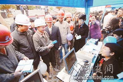 昨日,武漢市總工會大院內(nèi),農(nóng)民工“平安返鄉(xiāng)”票務(wù)趕集會正在舉行。武漢鐵路局、湖北公路客運集團等單位在這里擺臺設(shè)點,共同為農(nóng)民工提供票務(wù)預(yù)訂服務(wù)。來自武漢市16個單位的500多名農(nóng)民工代表參加了趕集會。(記者張磊江卉通訊員賀鵬攝)