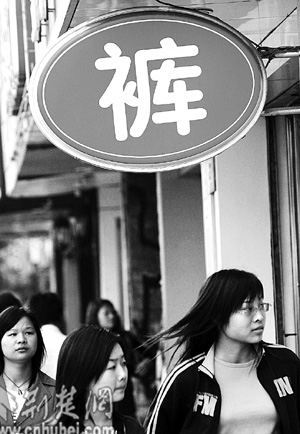 昨日,武漢市江漢路某品牌商店用碩大的“褲”字吸引行人購買欲(圖一)。在市場(chǎng)競(jìng)爭(zhēng)激烈的今天,“臉面”設(shè)計(jì)成為商家費(fèi)勁腦筋追逐的重心,但也有一些商家長期打著“大甩賣”的旗號(hào)欺騙消費(fèi)者,頗煞風(fēng)景(圖二)。記者 張鴻 攝
