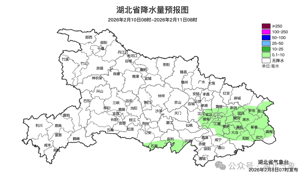 預(yù)報(bào)來源:湖北省氣象臺(tái)2026年2月8日08時(shí)預(yù)報(bào)