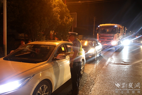 崇陽交警在重點路段嚴查酒駕醉駕。通訊員 供圖