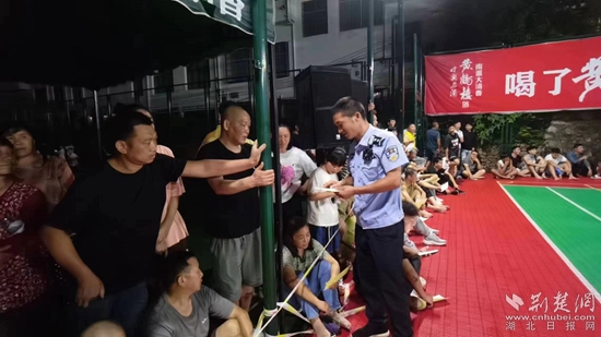 “當(dāng)今社會,電信網(wǎng)絡(luò)詐騙‘花樣百出’,騙術(shù)層出不窮,不明鏈接千萬別點開,小利誘惑一定要警惕……”8月13日晚,在銅鐘鄉(xiāng)“村BA”籃球賽現(xiàn)場,銅鐘派出所民輔警利用中場休息時間耐心地給現(xiàn)場觀賽群眾講解防詐騙知識。