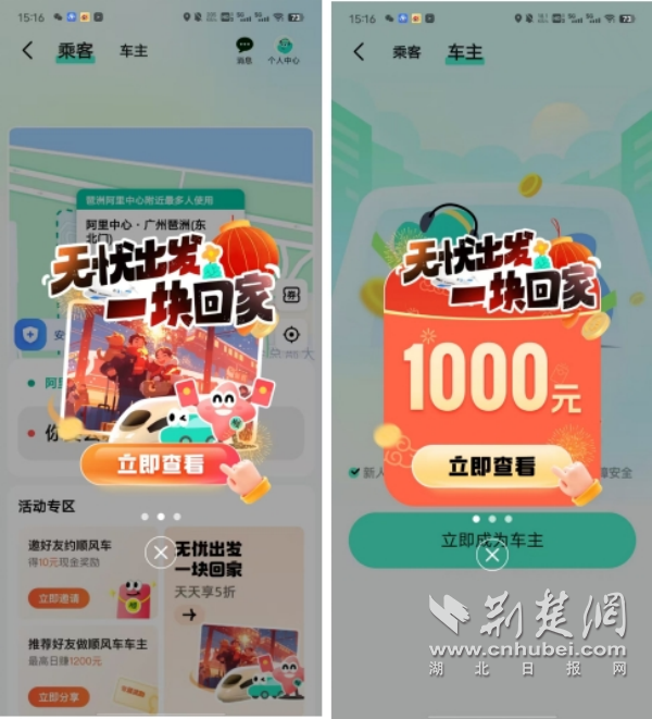 此次針對春運順風(fēng)車的司乘人群,高德地圖還推出了用車出行福利。注冊成為高德順風(fēng)車車主,1月17日—2月10日,天天有獎勵,最高可得1000元;而順風(fēng)車乘客參與領(lǐng)券活動,最高也可省100元,上高德地圖搜索“溫暖回家路”即可參與。