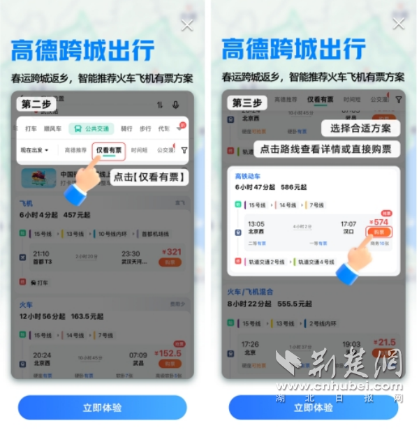 針對2025年龐大的春運出行需求,高德地圖推出了“僅看有票”功能,用戶在規(guī)劃出行路線時,僅查看當(dāng)前有票可售的火車、飛機班次,同時結(jié)合了高德地圖強大的智能推薦系統(tǒng),提供最優(yōu)的出行方案。