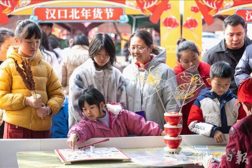 漢口北新春年貨節(jié)在與游客互動上做足功夫——除了有舞獅表演、拓印紅包、面塑、糖畫、剪窗花等年味活動,還有書法名家為客商和市民書寫“私人訂制”春聯(lián)。