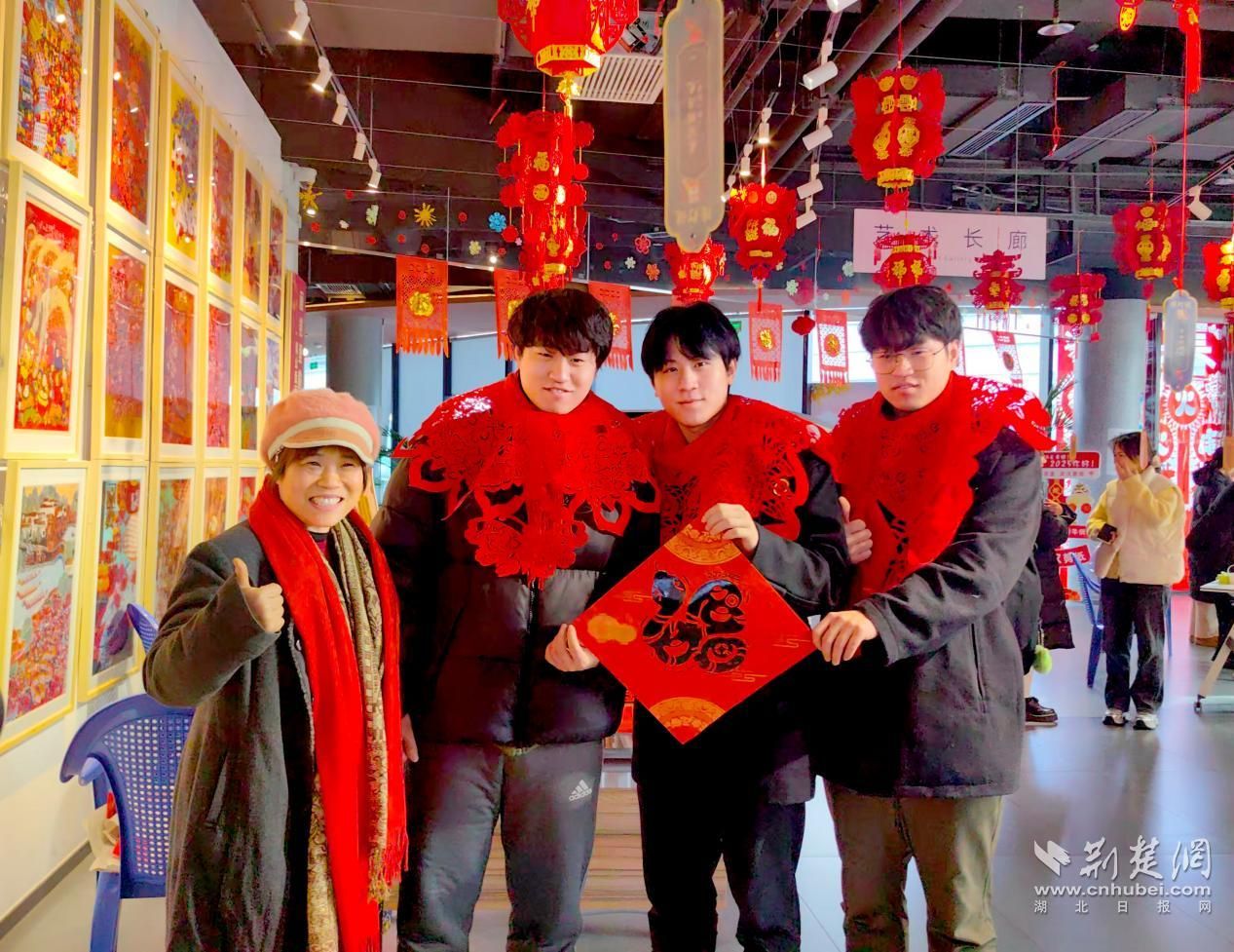 臺灣媽媽陳敏惠目前在武漢經(jīng)營翔和口腔診所。體驗非遺版畫和剪紙后,她對精巧的非遺贊嘆不已,直言此次武漢過年十分精彩、“年味足”。結(jié)束后,她將剪紙作品佩戴在三個兒子身上合影留念,稱紅色剪紙寓意吉祥,承載著對孩子們的新年祝福,“我覺得剪紙滿是福氣的意味,這樣新年才有新希望。”