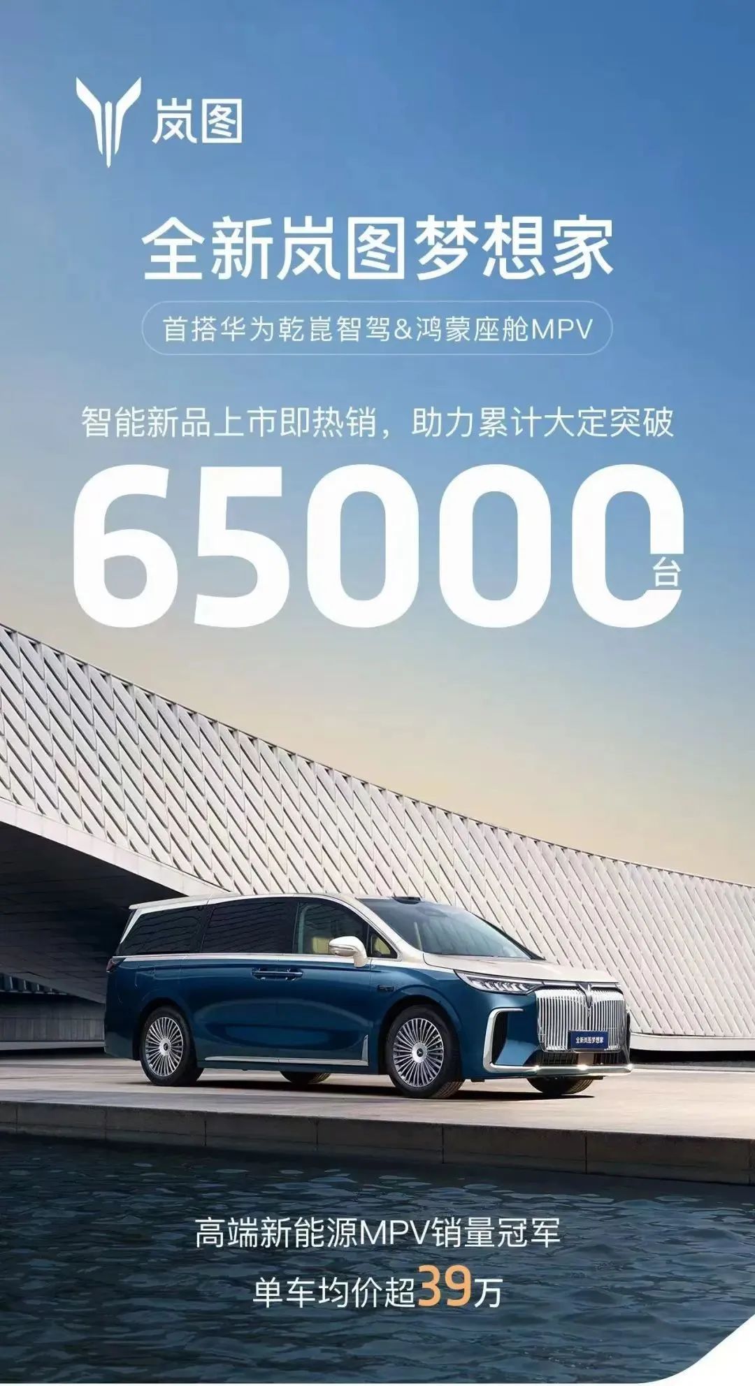 作為高端新能源MPV市場明星產品全新嵐圖夢想家以領先一代智能豪華成為精英大家庭出行首選上市以來迅速登頂新能源MPV銷量榜此前實現單月交付過萬獲得市場銷量與用戶口碑雙豐收在35萬元以上MPV市場每賣出3輛,就有1輛嵐圖夢想家