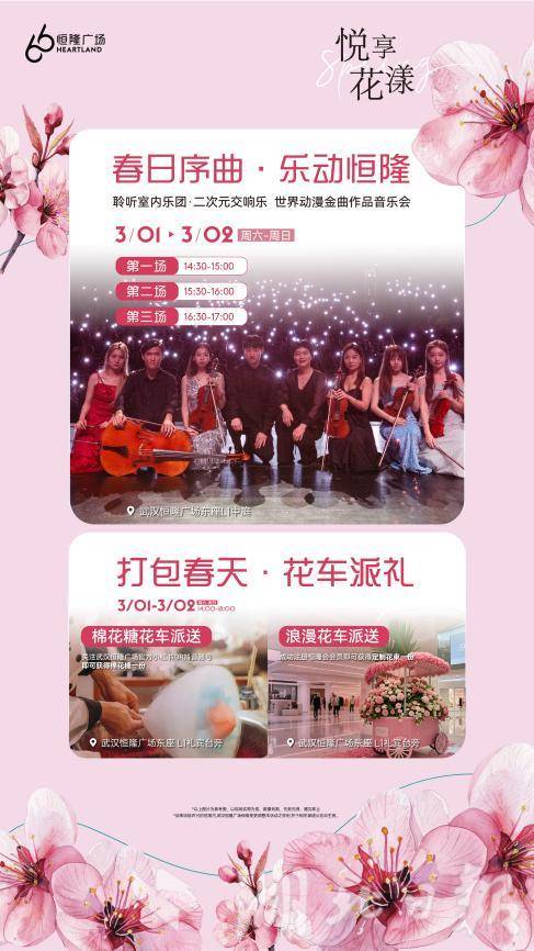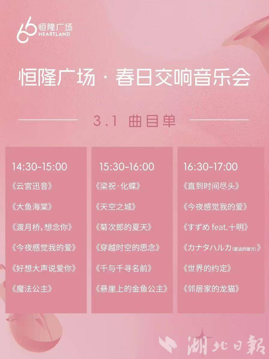 3月1日-2日,春日動(dòng)漫金曲音樂(lè)會(huì)即將在武漢恒隆廣場(chǎng)舉行。本次音樂(lè)會(huì)由聆聽室內(nèi)樂(lè)團(tuán)帶來(lái),邀請(qǐng)武漢市民共賞“春日序曲”。