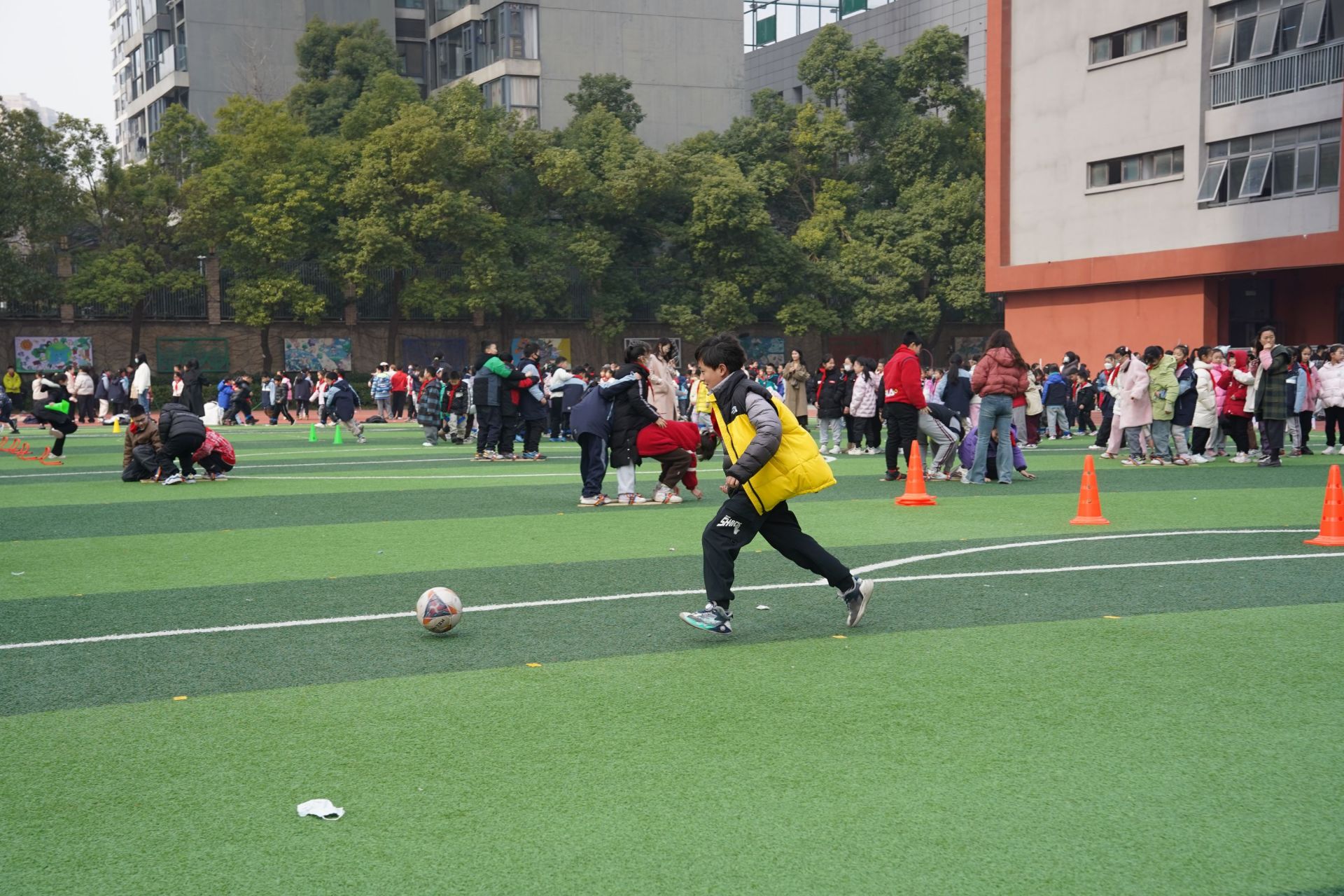 “此次改革以保障學(xué)生每天2小時綜合運(yùn)動時長為目標(biāo),并結(jié)合年級錯峰安排,開展跑操、跳繩、球類、踢毽子、滾鐵環(huán)等多樣化趣味活動?!睎|湖實(shí)驗(yàn)學(xué)校體衛(wèi)藝中心主任金淵老師觀察到,活動時間延長后,學(xué)生們更愿意走出教室,到操場上充分參與運(yùn)動,學(xué)生課堂專注力也明顯提升。
