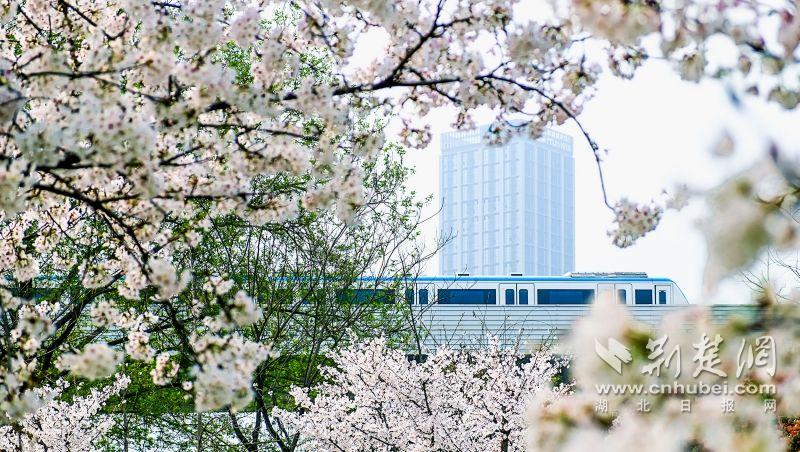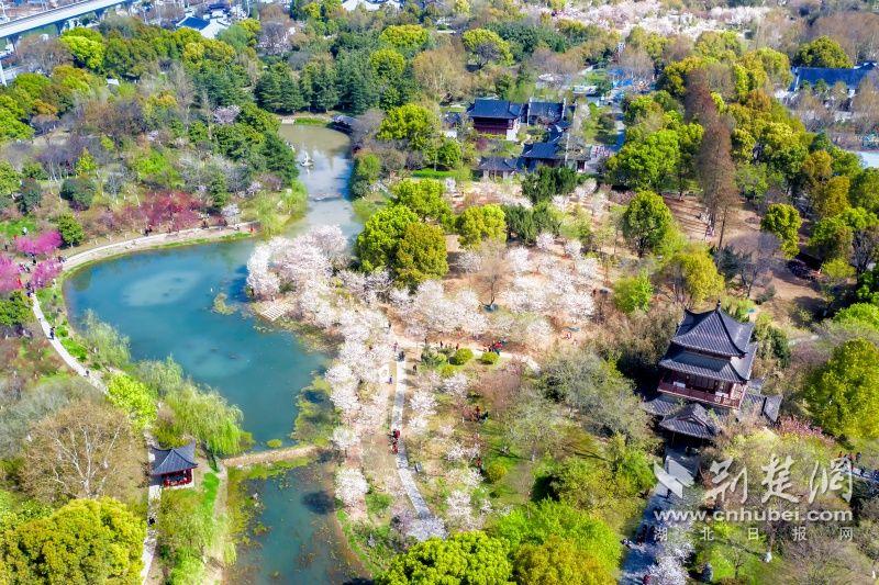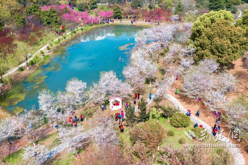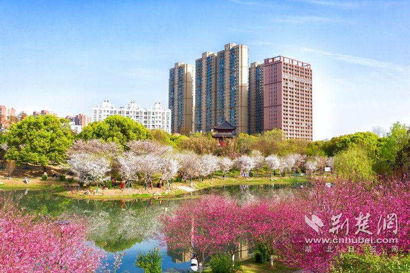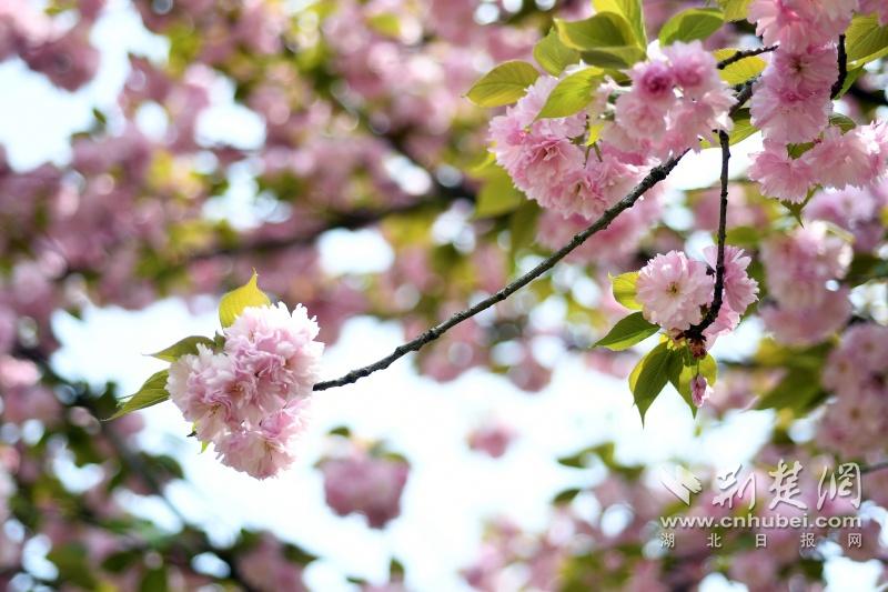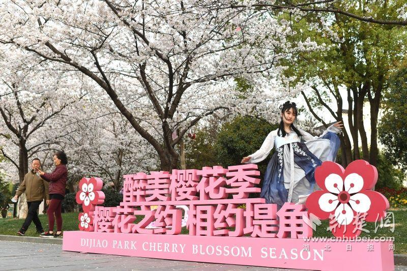 作為武漢“必打卡十大賞櫻點”之一的堤角公園內(nèi)共有櫻花樹1500余株22種,花期從3月一直到4月。通訊員供圖