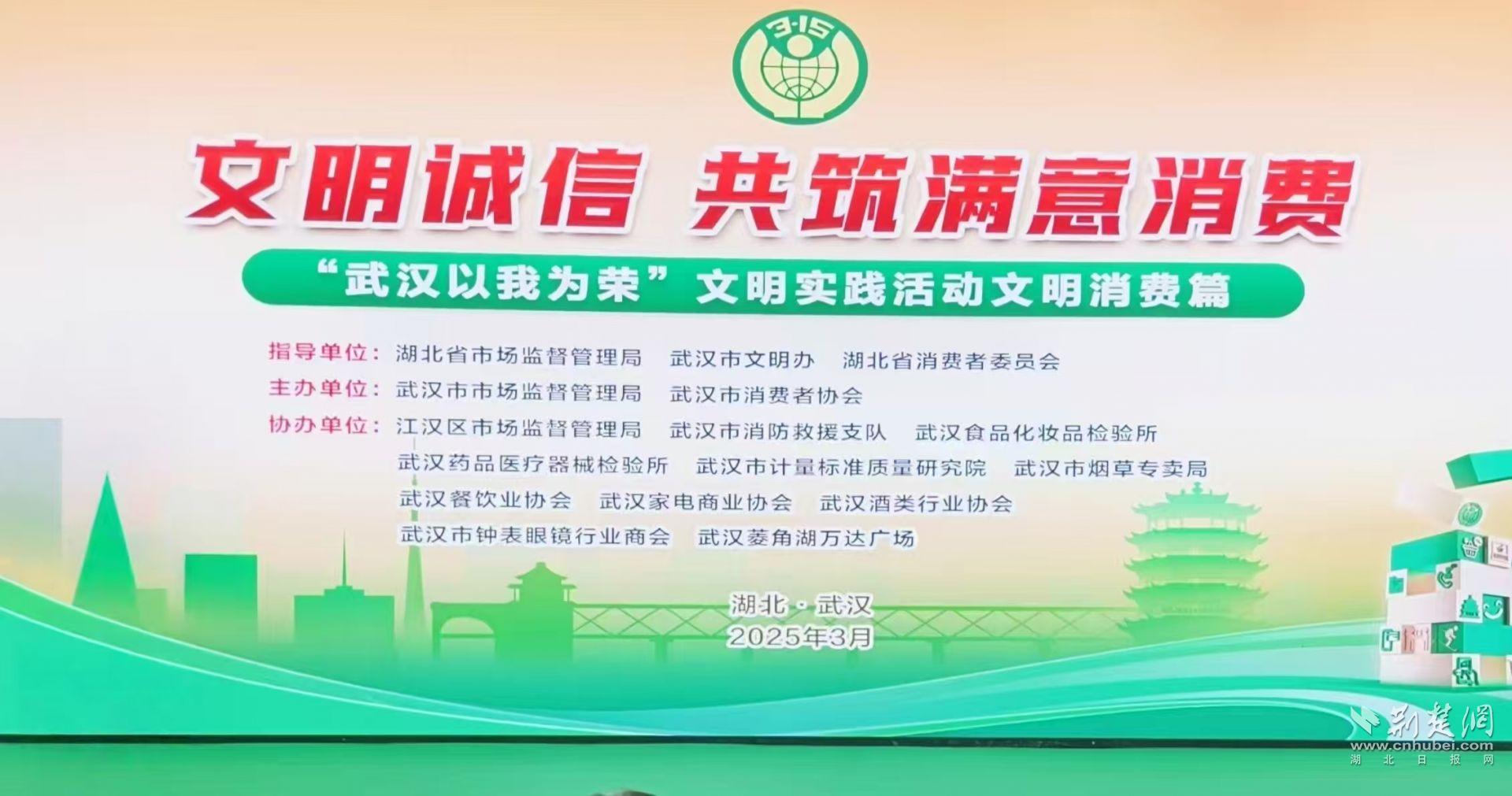 荊楚網(wǎng)(湖北日報網(wǎng))訊(記者 何婧 通訊員 趙袁 蘭莉)今年“3·15”是第43個國際消費(fèi)者權(quán)益日。3月12日,武漢市市場監(jiān)管局、武漢市消費(fèi)者協(xié)會在江漢區(qū)菱角湖萬達(dá)廣場啟動“文明誠信 共筑滿意消費(fèi)”“武漢以我為榮”文明實(shí)踐活動文明消費(fèi)篇,進(jìn)一步倡導(dǎo)市民文明理性消費(fèi),維護(hù)消費(fèi)者合法權(quán)益。