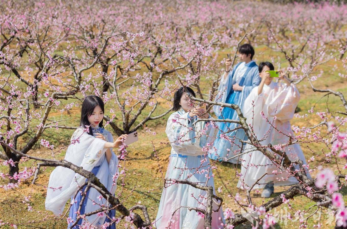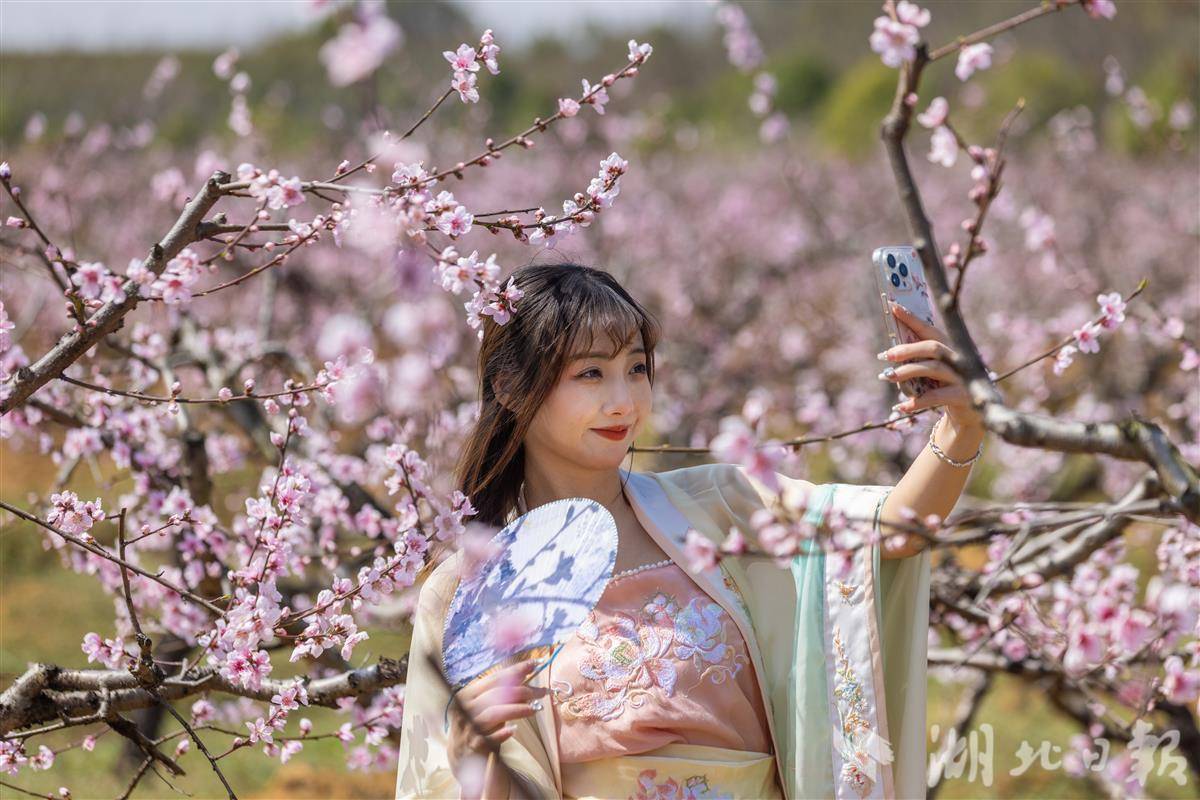 3月18日桃花節(jié)開幕首日,就迎來(lái)了武漢、孝感及周邊地市近3萬(wàn)名游客。原野花海,田園林間,盡是拍照打卡的笑臉,宋代文豪蘇東坡筆下“花發(fā)顏如醉”的詩(shī)意景象仿佛在此重現(xiàn)。據(jù)悉,當(dāng)?shù)靥一s1/3已完全盛開,整體花海將在一周左右達(dá)到盛放期。