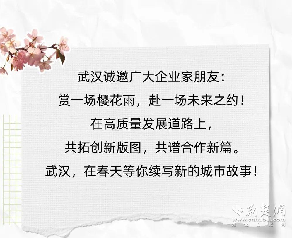 來自世界500強、大型跨國公司的負責(zé)人代表將來漢賞花洽談覓合作。武漢市策劃賞櫻季“投資武漢”招商系列活動,以“‘櫻’你而來、共建支點”為主題,聚焦外資招引、楚商回鄉(xiāng)、校友招商、產(chǎn)業(yè)招商、供應(yīng)鏈招商等領(lǐng)域,推動市區(qū)聯(lián)動、部門協(xié)同,精心策劃招商活動,以花為媒,推動優(yōu)質(zhì)資源銜接,為城市產(chǎn)業(yè)集聚和創(chuàng)新發(fā)展聚勢賦能。