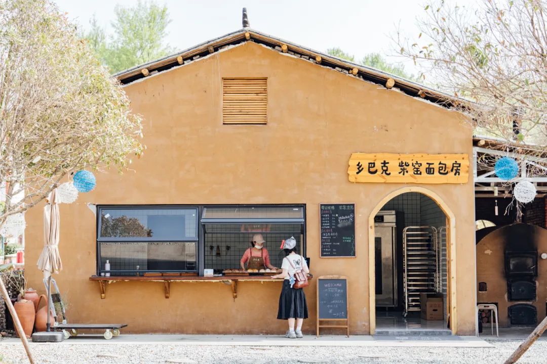 300℃的土窯,柴火噼啪作響。戴著粗布手套的師傅用長柄木鏟送進(jìn)面團(tuán),時(shí)間一到,米面包、紅豆包、咖啡包等現(xiàn)烤面包裹著焦香出爐,讓人垂涎欲滴。