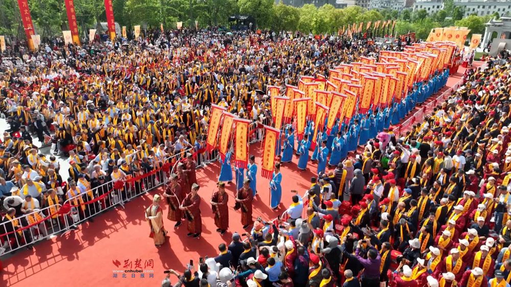 4月16日,湖北·麻城孝感鄉(xiāng)乙巳年尋根祭祖大典在孝感鄉(xiāng)文化園南廣場盛大開啟,來自川渝云貴贛陜鄂豫皖9省30個縣市的移民后裔、文化學者及游客齊聚一堂,共溯歷史根脈,弘揚優(yōu)良家風。