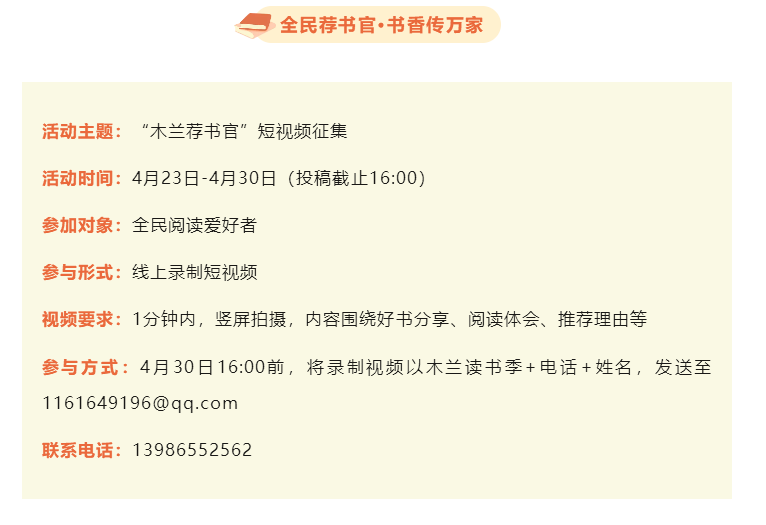 無論您是深耕文字的名家學(xué)者,還是熱愛閱讀的普通市民,只要您愿以真誠(chéng)分享好書,即可成為"木蘭薦書官"!