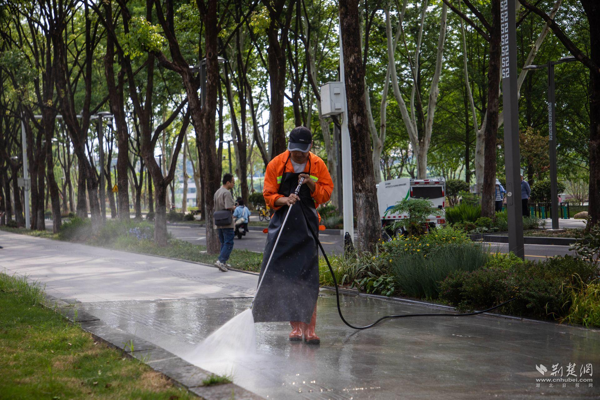 “五一期間,為了給市民和游客打造整潔舒適的城市環(huán)境,我們緊盯商業(yè)街區(qū)、旅游景區(qū)、交通場站、四線一口等重點區(qū)域,定人定崗、人機結(jié)合、延長作業(yè)時間、增加作業(yè)頻次,確保全時全域干凈整潔。”江漢區(qū)城市管理執(zhí)法局副局長張方黎說道。
