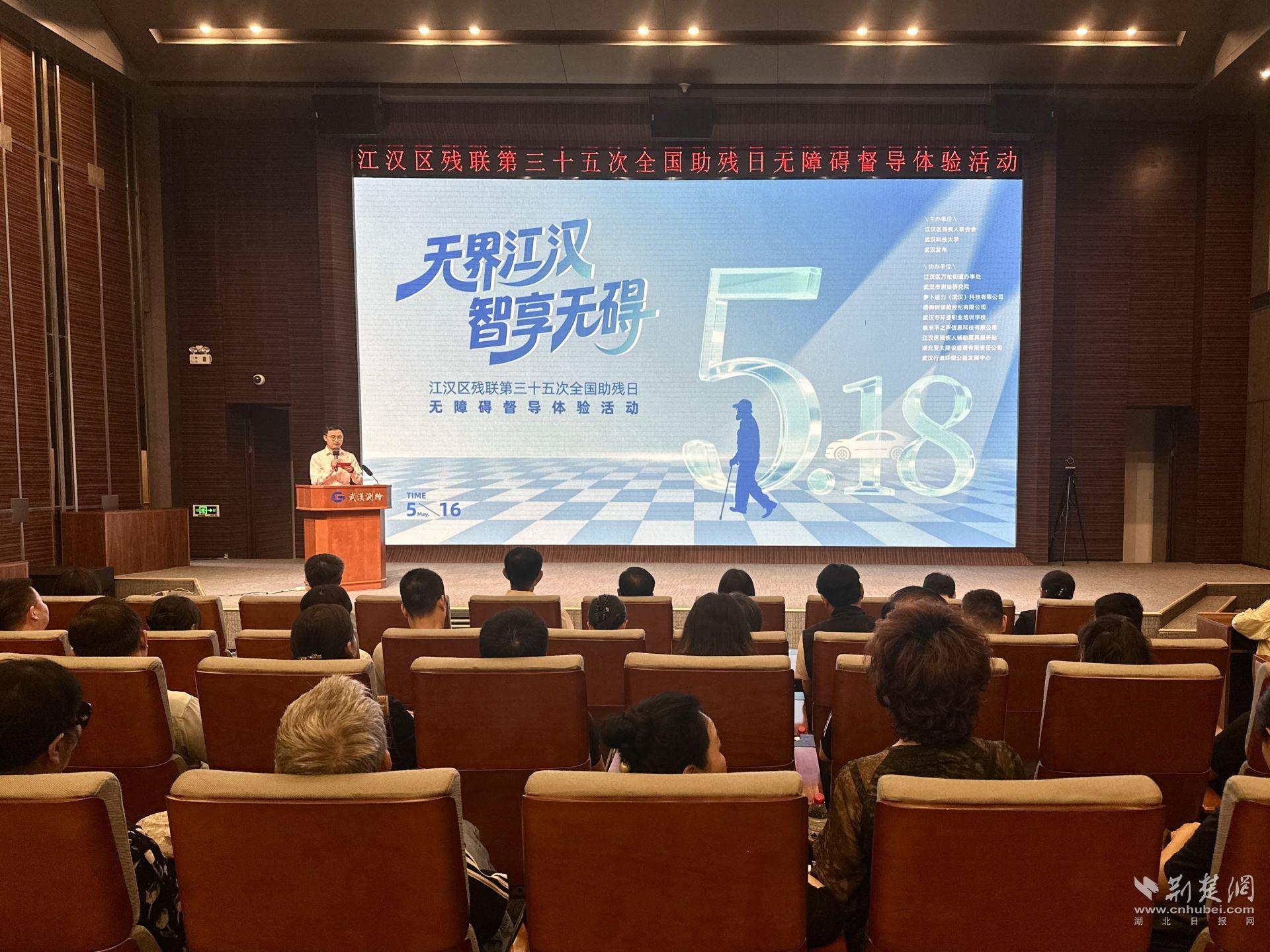 當(dāng)天,在武漢市江漢區(qū)殘聯(lián)舉辦的“無界江漢 智享無礙”無障礙督導(dǎo)體驗活動中,專家學(xué)者、人大代表、志愿者與殘疾人代表等百余人共聚一堂,在實踐中檢驗無障礙環(huán)境建設(shè)成果,用沉浸式科技體驗,助推無障礙環(huán)境建設(shè),提升城市溫度。