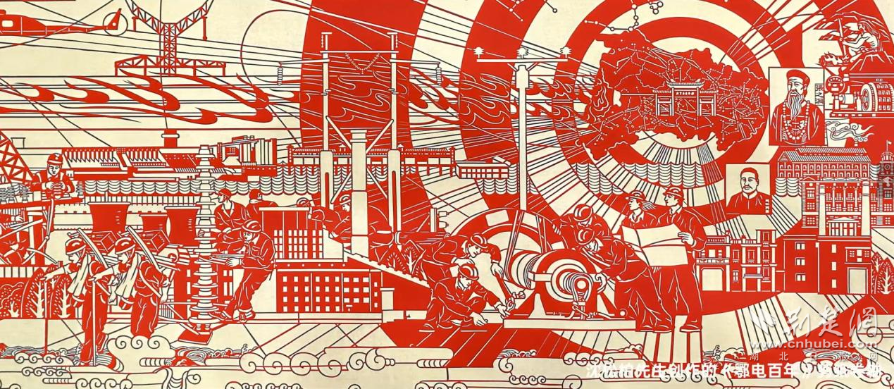 2023年,沈松柏在傳統(tǒng)剪紙手法“金紙刻制、彩紙襯色”的基礎(chǔ)上,通過更為精細(xì)的雕刻,創(chuàng)作出展現(xiàn)湖北電力百年發(fā)展歷程的剪紙長(zhǎng)卷《百年鄂電 光耀荊楚》。從1893年湖北點(diǎn)亮的第一盞電燈到三峽水電站的建設(shè),從特高壓變電站到新型電力系統(tǒng)建設(shè),都在這幅6.3米的剪紙長(zhǎng)卷上鋪陳開來?!白鳛橐幻娋W(wǎng)企業(yè)員工,通過剪紙這個(gè)載體,來表現(xiàn)電力發(fā)展、綠色電力建設(shè)一百年,我覺得非常光榮、非常自豪?!?025年,沈松柏憑借在剪紙藝術(shù)領(lǐng)域的深厚造詣與長(zhǎng)期以來的突出貢獻(xiàn),入選“鄂電銀輝”首批文化先鋒類人才。沈松柏表示,以刀為筆雕刻時(shí)代風(fēng)貌,是非遺傳承人的使命,也是驕傲。