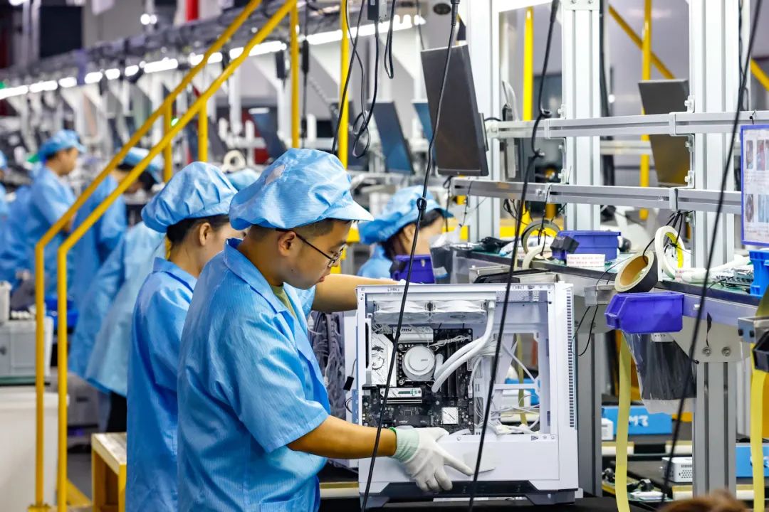 “星閃是新一代近距離無線連接技術,傳輸速度和抗干擾性遠超藍牙和Wi-Fi?!迸噬萍贾饕撠熑私榻B,攀升科技實現(xiàn)柔性化生產,讓生產線上每臺電腦都不一樣,顧客在網(wǎng)上下單,基本實現(xiàn)24小時內發(fā)貨,完全滿足用戶大規(guī)模個性化定制。