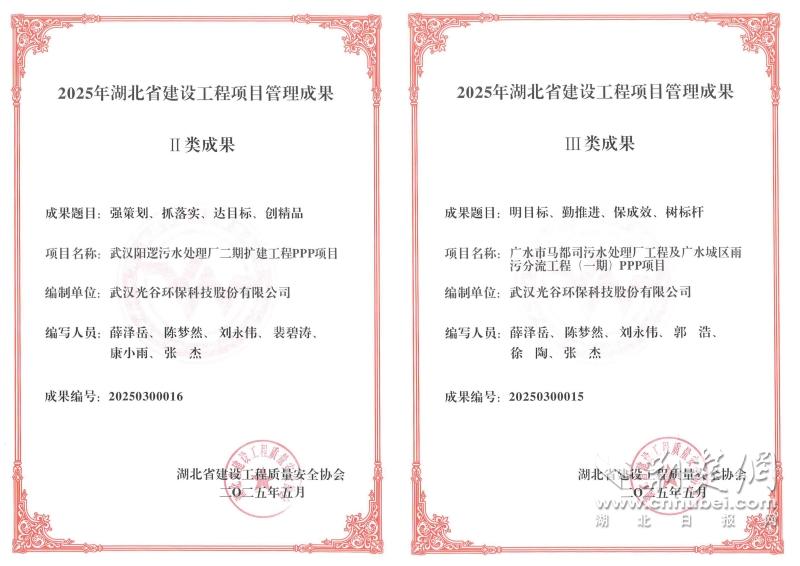 荊楚網(wǎng)(湖北日?qǐng)?bào)網(wǎng))訊(通訊員 董高宣)近日,湖北省建設(shè)工程質(zhì)量安全協(xié)會(huì)召開(kāi)2025年度湖北省建設(shè)工程項(xiàng)目管理成果交流發(fā)布會(huì)。湖北聯(lián)投東湖高新集團(tuán)旗下光谷環(huán)保申報(bào)的兩項(xiàng)成果,分別斬獲項(xiàng)目管理成果Ⅱ類(lèi)獎(jiǎng)、Ⅲ類(lèi)獎(jiǎng)。