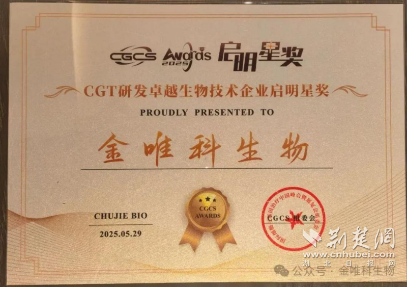 荊楚網(wǎng)(湖北日?qǐng)?bào)網(wǎng))訊(通訊員 董高宣)近日,第六屆國(guó)際細(xì)胞與基因治療中國(guó)峰會(huì)(CGCS 2025)在南京揚(yáng)子江國(guó)際會(huì)議中心召開,同期舉行了CGCS Awards“啟明星獎(jiǎng)”頒獎(jiǎng)盛典。東湖高新集團(tuán)投資企業(yè)武漢禾元生物科技股份有限公司(以下簡(jiǎn)稱“禾元生物”)因優(yōu)質(zhì)的產(chǎn)品與服務(wù)榮獲“CGT領(lǐng)域可靠原料與試劑供應(yīng)啟明星獎(jiǎng)”,另一投資企業(yè)成都金唯科生物科技有限公司(以下簡(jiǎn)稱“金唯科”)憑借其在基因治療領(lǐng)域的創(chuàng)新成果榮獲“CGT研發(fā)卓越生物技術(shù)企業(yè)啟明星獎(jiǎng)”。