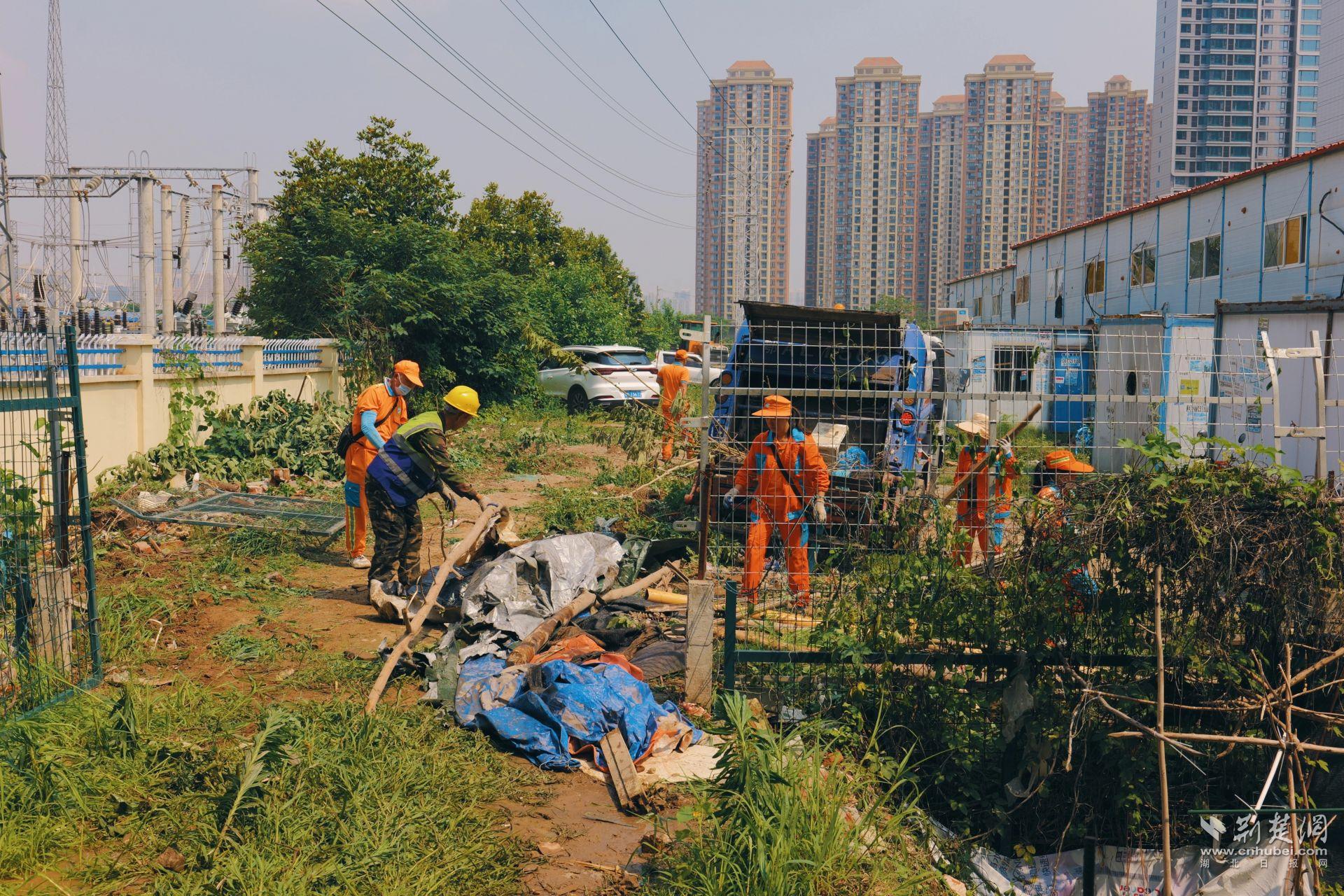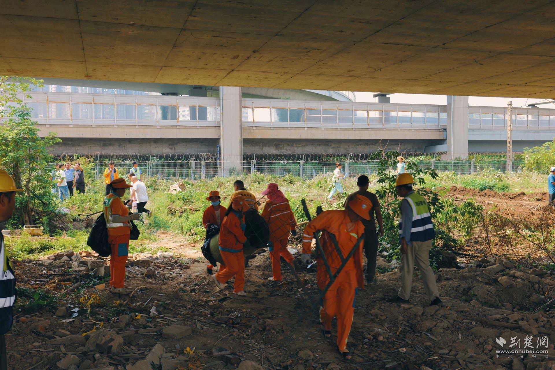 在區(qū)城管局牽頭動(dòng)員下,執(zhí)法人員、環(huán)衛(wèi)力量聯(lián)合新村街道的干部職工、社區(qū)工作人員及武漢高鐵工務(wù)段技術(shù)人員以及公安干警們,共同組成200余人的攻堅(jiān)隊(duì)伍,同時(shí)調(diào)度3臺(tái)大型挖掘機(jī)和4輛垃圾清運(yùn)車,對(duì)鐵路橋下約3200平方米的“臟亂差”區(qū)域展開了拉網(wǎng)式清理。