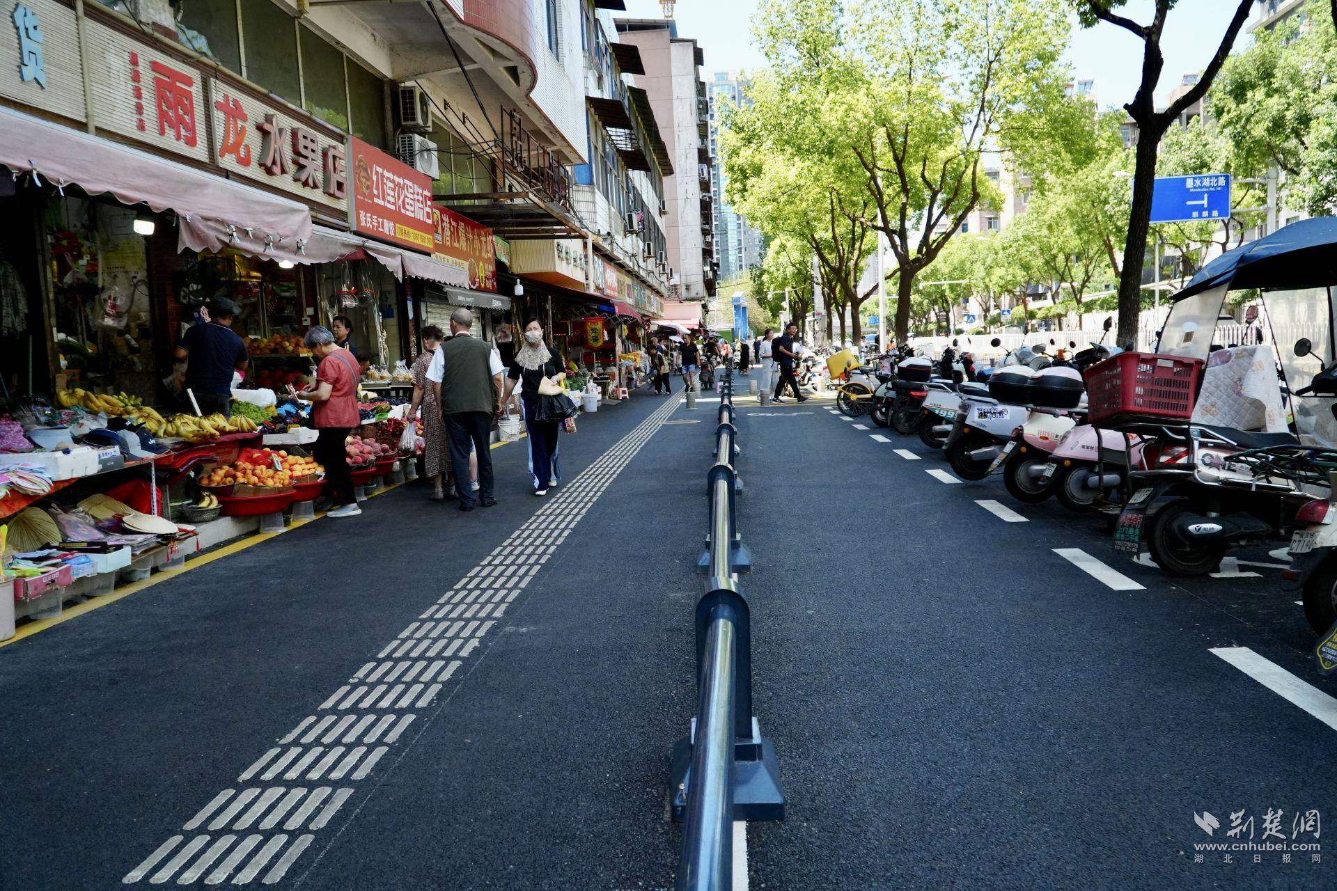 現(xiàn)在,瀝青路面平整干凈,人行道、非機(jī)動(dòng)車道清晰分隔;370米護(hù)欄有效實(shí)現(xiàn)人車分流;桂花樹與香樟樹點(diǎn)綴街頭,市場(chǎng)顏值大大提升。而市場(chǎng)外圍的“外擺線”,也讓攤販有序經(jīng)營(yíng)、秩序井然。