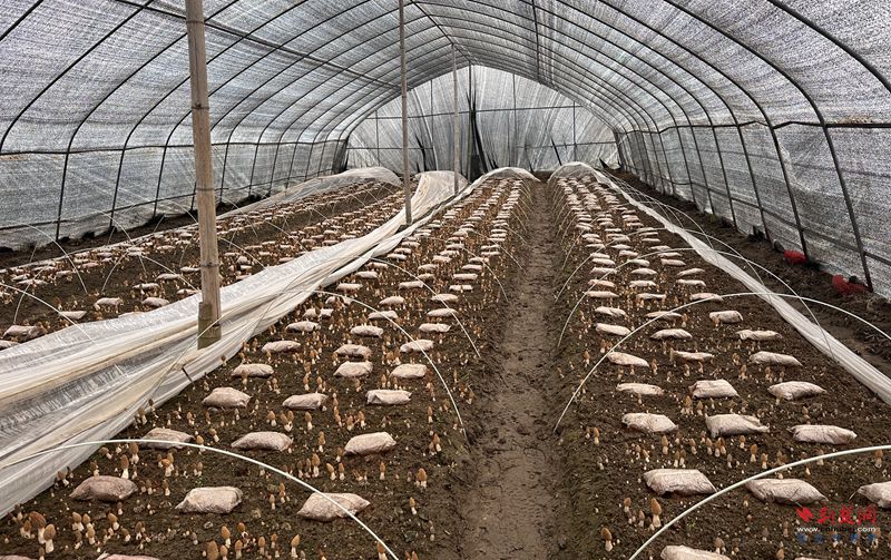 在外婆橋生態(tài)農(nóng)莊,羊肚菌大棚內(nèi)菌香四溢,工人們正將新鮮菌菇分揀裝箱;不遠(yuǎn)處的綠皮火車(chē)主題咖啡館別具特色。