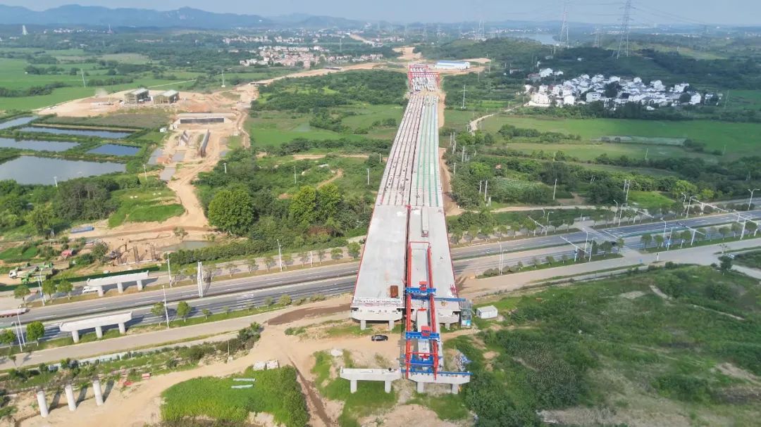位于王家河街的鳳凰山大橋全長840米,自5月20日啟動架梁施工以來,建設(shè)團(tuán)隊(duì)面對高溫、雨季等多重挑戰(zhàn),通過優(yōu)化施工方案、增加夜間作業(yè)班次,將工期壓縮了10天,提前完成140片箱梁架設(shè)任務(wù)。當(dāng)天,記者在施工現(xiàn)場看到,大橋左幅預(yù)制箱梁已全部架設(shè)完成,實(shí)現(xiàn)左幅貫通。
