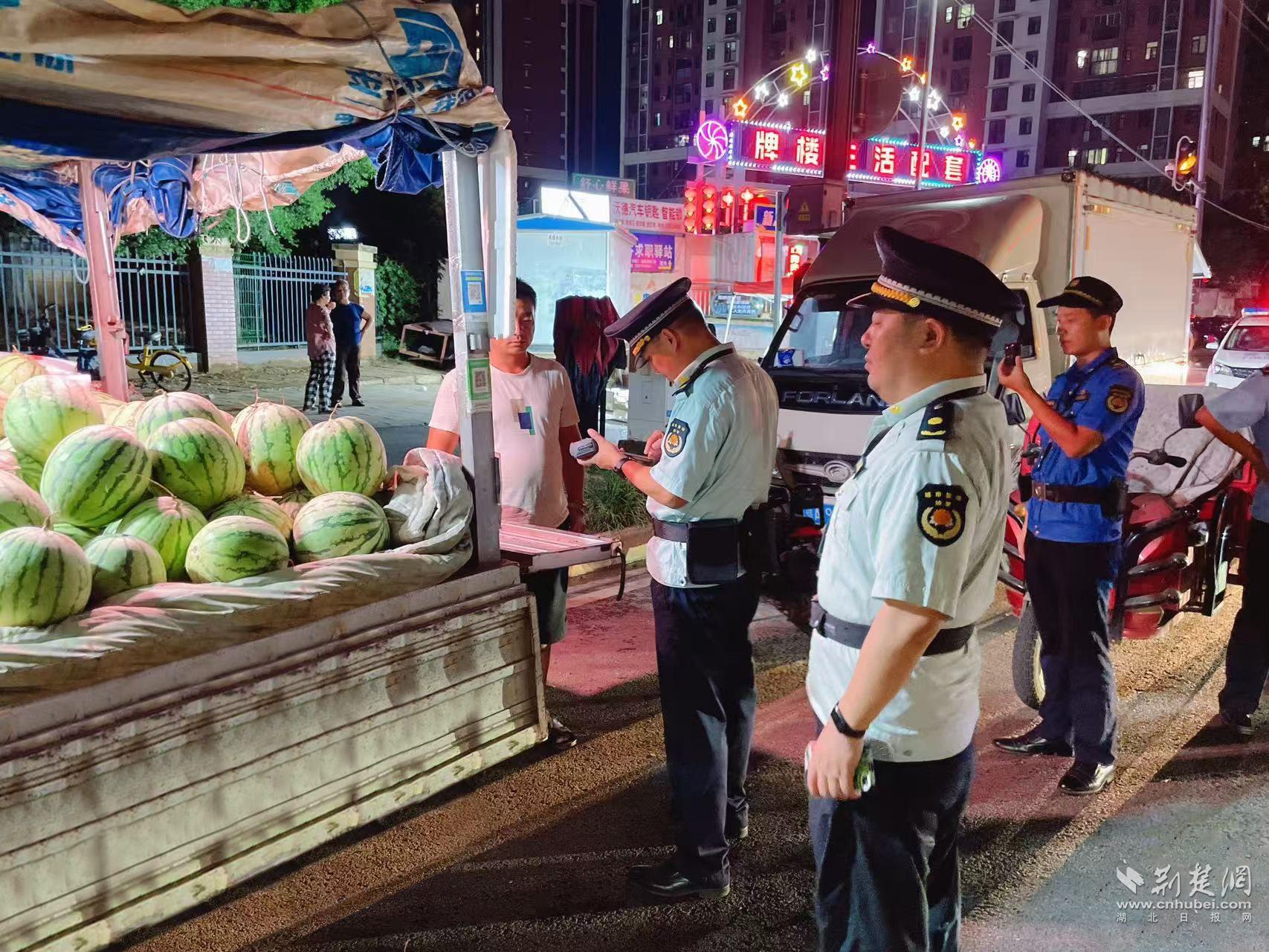 荊楚網(wǎng)(湖北日報(bào)網(wǎng))訊(記者 何婧 實(shí)習(xí)生 陳靖南 通訊員 魯波)隨著高溫天氣持續(xù),夜市消費(fèi)迎來高峰期。為保障市民夏日消費(fèi)安全與城市環(huán)境秩序,近日,東湖高新區(qū)城管局執(zhí)法督察大隊(duì)四中隊(duì)聯(lián)合佛祖嶺街綜合執(zhí)法中心、交管大隊(duì)三中隊(duì)、區(qū)市場監(jiān)督管理局,對同興夜市、聯(lián)想家園夜市及周邊道路開展聯(lián)合夜查行動。