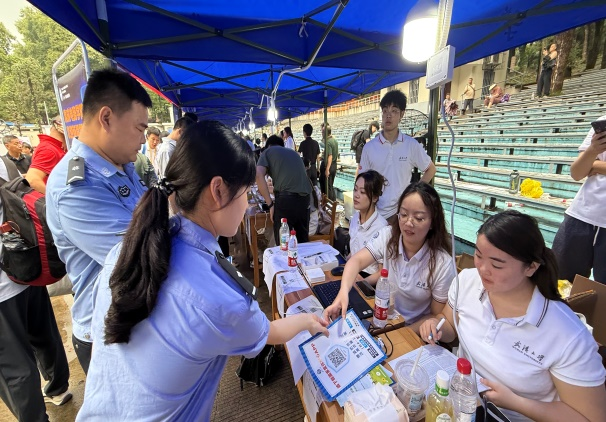荊楚網(湖北日報網)訊(通訊員 方茜)9月1日,武漢大學迎來新生報到高峰。為筑牢校園安全屏障,武昌區(qū)珞珈山街道平安建設辦聯合轄區(qū)派出所、武漢大學保衛(wèi)部,以“青春無毒·反詐同行·安全護航”為主題,在梅園操場、工學部體育館等新生集中區(qū)域開展系列安全宣傳活動,為3000余名新生及家長送上“安全第一課”。