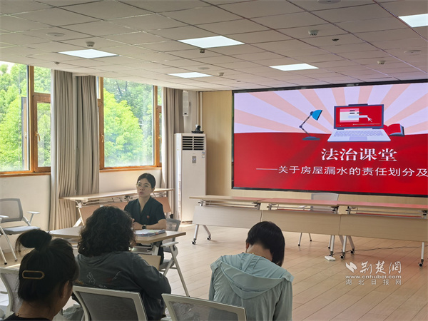 南湖街道依托綜治中心平臺,組織人大代表、政協(xié)委員、“法律明白人”、物業(yè)服務公司工作人員、社區(qū)居民等旁聽一起典型的房屋漏水案。原告為南湖街道松濤苑小區(qū)的頂樓業(yè)主,被告為該小區(qū)物業(yè)服務公司。今年5月,武漢遭遇特大暴雨,業(yè)主因屋頂排水堵塞導致雨水反灌并逐層滲透至樓下,訴請物業(yè)公司賠償損失并履行檢修義務。法官圍繞物業(yè)公司是否盡到管理維護職責、過錯與損害之間的因果關系等焦點進行審理,為旁聽人員呈現(xiàn)了一堂直觀的“法治公開課”。