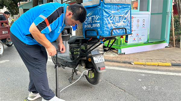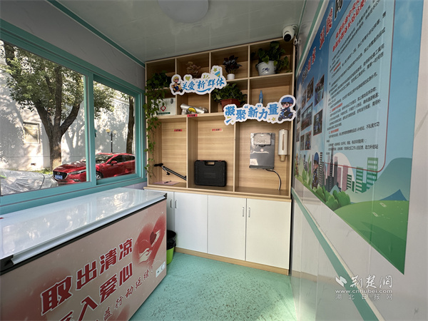 社區(qū)在北大門入口處設立的“暖心補給站”,成了小哥們的“能量加油站”。拉開補給站的冰柜,冰爽的礦泉水整齊擺放;醫(yī)藥箱里,創(chuàng)可貼、碘伏、藿香正氣水等應急藥品一應俱全;維修工具箱和電動打氣筒已幫十多位小哥解決過電動車爆胎、零件松動的難題;打包袋也方便了小哥臨時更換破損外賣包裝。“夏天送完餐,來這兒取瓶冰水,渾身的燥熱都散了,心里也涼快!”快遞小哥王師傅邊說邊拿起一瓶水,臉上滿是滿足。
