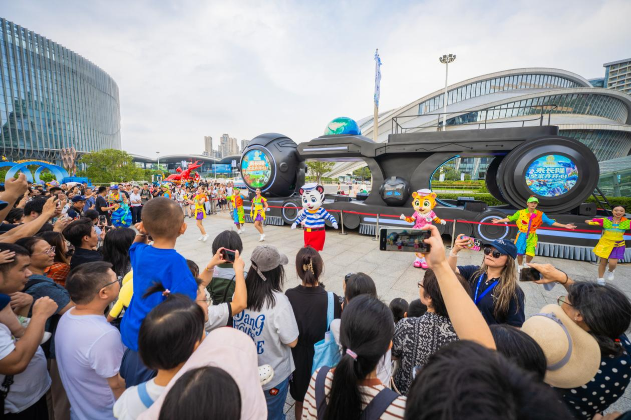 小黃人、卡通虎都來了。9月12日,在室外展區(qū),北京環(huán)球影城特別版狂歡嘉年華掀起一股熱潮。小黃人斯圖爾特、凱文、穿靴子的貓、朱利安國王身穿盛裝,閃亮登場。演員們會向現(xiàn)場小伙伴發(fā)出熱舞邀請,還有教學(xué)。9月13日,長隆集團領(lǐng)銜出場的“歡樂大使”卡通虎卡卡、琦琦與粉小琦盛裝亮相,帶來了一場歡樂派對,還有外籍演員熱舞?,F(xiàn)場觀眾直呼:“好熱情”“好活潑”!