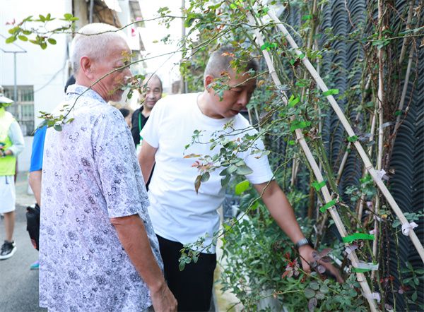不過半小時,原本雜亂的屋頂花園已大變樣——月季枝條疏朗有致,凌霄花形態(tài)規(guī)整,各類花草錯落分明,透著勃勃生機??粗矍暗某晒?,龔吉條笑著說:“這趟來得值!又是開眼界又是學技巧,回去就能用到社區(qū)里,讓我們的小花園也變個樣!”
