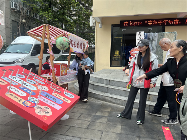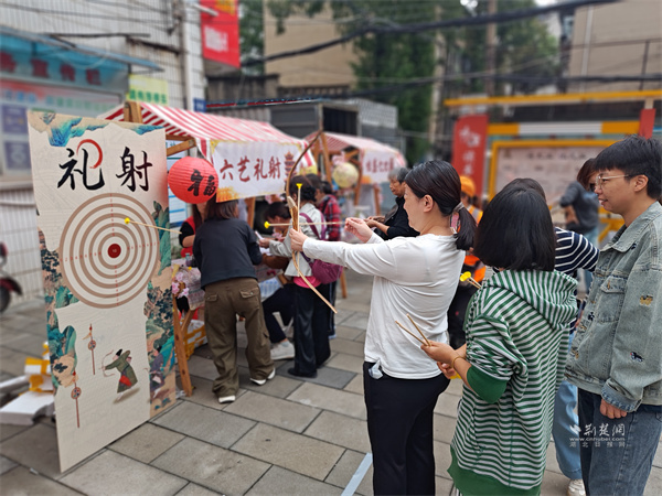 游戲互動區(qū)氛圍熱烈?!吧涓膊轮i”攤位前,居民踴躍參與,猜中謎底者可獲贈汪玉霞蘇月餅;“投壺納福”吸引眾人一試身手,在趣味中感受古禮韻味;“福來套圈”則準(zhǔn)備了洗衣液、透明皂等實用獎品,深受居民喜愛。此外,“六藝禮射”項目讓居民親身體驗傳統(tǒng)射藝,在拉弓搭箭間感受古人的尚武精神與禮儀風(fēng)范。