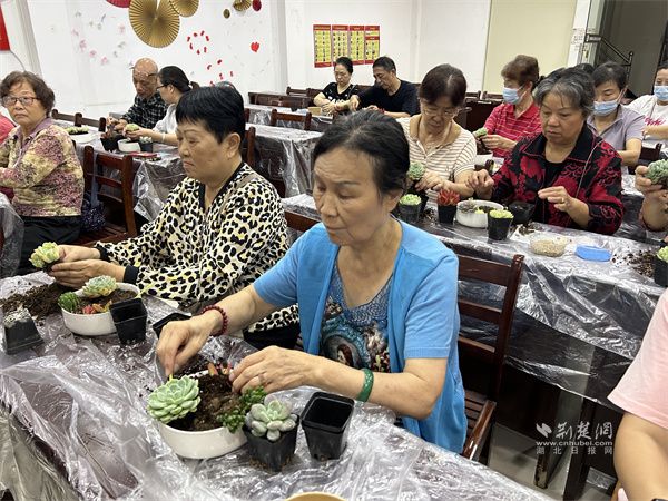 多肉微景觀制作環(huán)節(jié),在專業(yè)園藝師的指導(dǎo)下,居民們專注搭配多肉植株、營(yíng)養(yǎng)土與彩色鋪面石,巧妙裝點(diǎn)小花盆與玉兔玩偶,不時(shí)交流種植心得,詢問(wèn)養(yǎng)護(hù)技巧。不一會(huì)兒,一個(gè)個(gè)融合綠意與中秋意象的微景觀陸續(xù)完成,翠綠植株與靈動(dòng)玉兔相映成趣,洋溢著溫馨與創(chuàng)意。