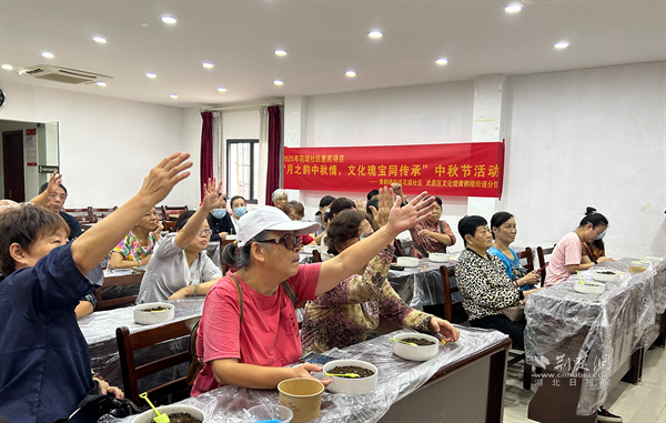 “解碼月餅文化”環(huán)節(jié)則從舌尖上展現(xiàn)中秋韻味。現(xiàn)場(chǎng)展示了廣式蓮蓉、蘇式鮮肉、京式自來(lái)紅等各地特色月餅,講解其象征意義——圓形寓意“闔家團(tuán)圓”,五仁寄托“五谷豐登”的美好愿景,并分享了月餅從唐代“胡餅”到現(xiàn)代多元口味的演變歷程。此外,活動(dòng)還介紹了傳統(tǒng)祭月儀式中的供品擺放、宮燈點(diǎn)燃、祭文誦讀等禮儀細(xì)節(jié),以及浙江錢(qián)塘觀潮、安徽徽州舞草龍、廣東潮汕燒塔等地域民俗,讓居民領(lǐng)略到中秋文化在不同水土中綻放的獨(dú)特魅力。