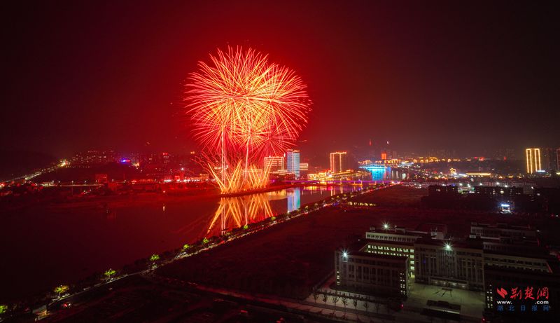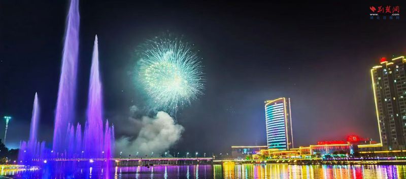 荊楚網(湖北日報網)訊(記者 胡小軍 通訊員 吳滕鈺)10月2日晚,英山縣城區(qū)一河兩岸霓虹閃爍,親水步道上鮮艷的國旗迎風飄揚,處處洋溢著喜慶熱烈的節(jié)日氣氛。大別山文學廣場周圍成為縣城熱度最高的地區(qū),上萬名市民、游客從四面八方匯集于此,大家翹首以盼,提前拿出手機,選好角度,用鏡頭定格即將開始的視覺盛宴。