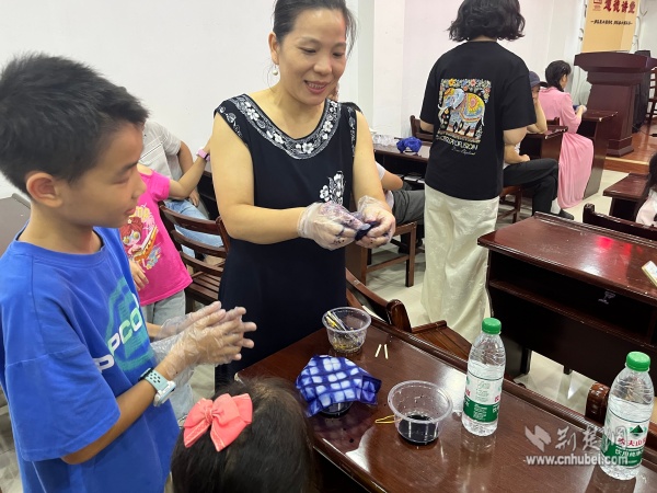 在動手體驗環(huán)節(jié),孩子們興致勃勃地嘗試各種扎結(jié)方法,家長們在旁細心協(xié)助。經(jīng)過精心捆扎與浸染,當(dāng)一塊塊布料被緩緩展開,呈現(xiàn)出獨一無二的藍白紋樣時,現(xiàn)場響起陣陣驚嘆?;顒硬粌H提升了孩子們的動手能力與專注力,更讓他們深切感受到傳統(tǒng)技藝的魅力與勞動的喜悅。