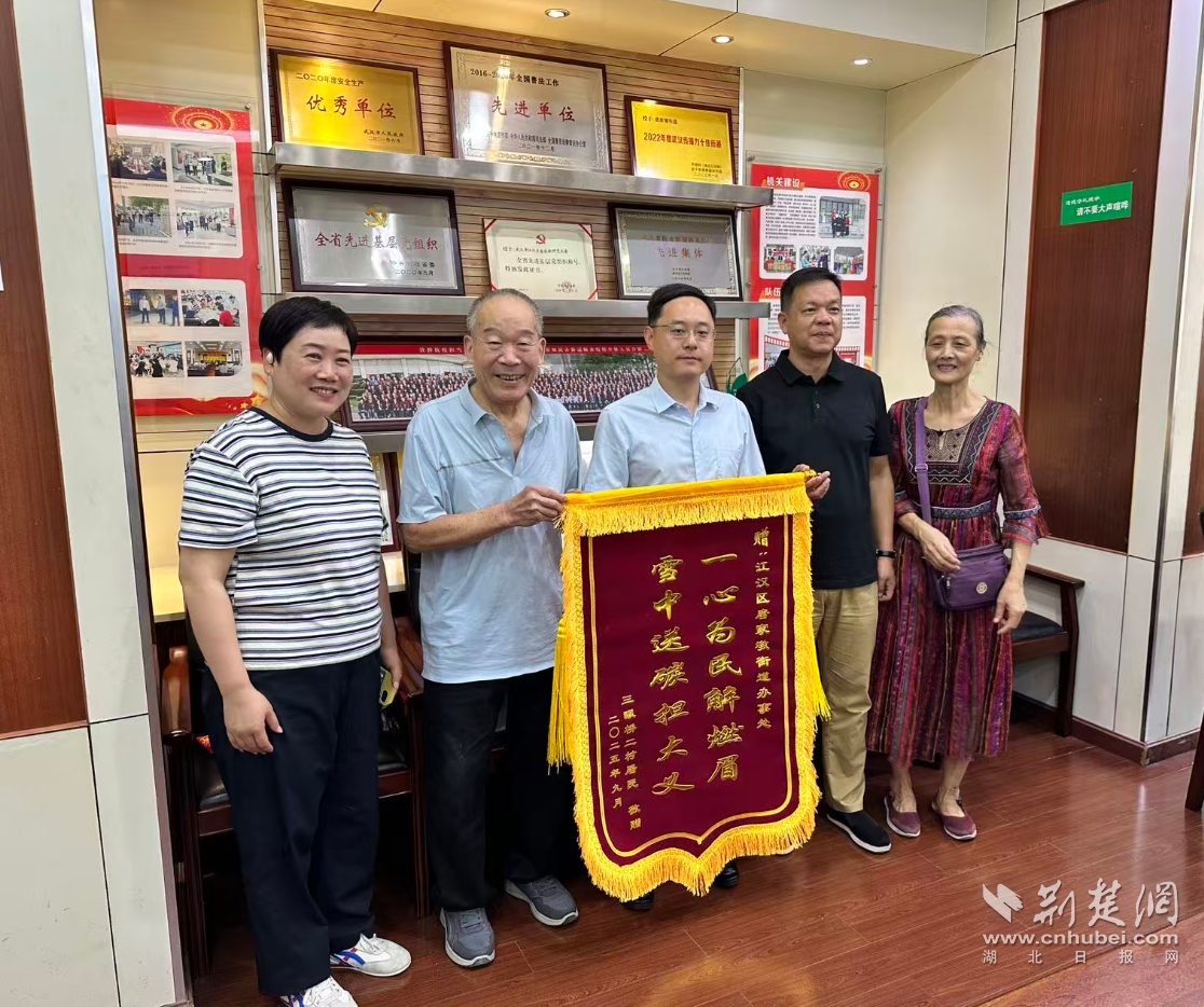 10月10日上午,武漢三眼橋二村52-54號(hào)的居民代表手捧一面寫(xiě)有“一心為民解燃眉,雪中送炭擔(dān)大義”的錦旗,走進(jìn)江漢區(qū)唐家墩街道辦事處,用最樸實(shí)的方式表達(dá)他們的感激之情。