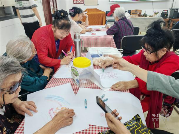 “香遇畫時光”主題日聚焦心理關懷,提供自然風景、幾何圖案等多元主題線稿,搭配植物精油香薰營造療愈氛圍。志愿者化身“心理陪伴員”,指導握筆涂色技巧,與老人嘮家常、分享生活故事?;顒硬粌H豐富了老年人的精神生活,更通過藝術療愈延伸至心靈慰藉,為構建老年友好型社區(qū)注入新活力。