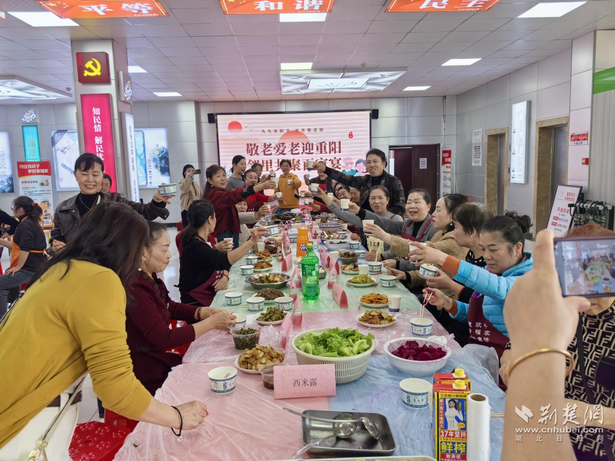 當(dāng)天上午,蒲潭社區(qū)老年學(xué)校與居家養(yǎng)老服務(wù)中心以“敬老愛老迎重陽,鄰里共聚百家宴”為主題,舉辦了一場熱鬧的重陽百家宴活動。為廣大老年居民送上第一份“暖心禮”。社區(qū)居民歡聚一堂,煮餃子、炸雞冠餃,品佳肴、唱歡歌,共慶佳節(jié)。
