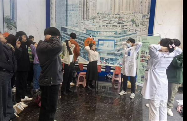 “健康驛站”區(qū)域,武昌醫(yī)院醫(yī)務(wù)人員為職工提供血糖血壓測(cè)量、頸椎腰椎檢查等服務(wù),現(xiàn)場(chǎng)教學(xué)健康操,指導(dǎo)大家利用工作間隙科學(xué)鍛煉、緩解疲勞。